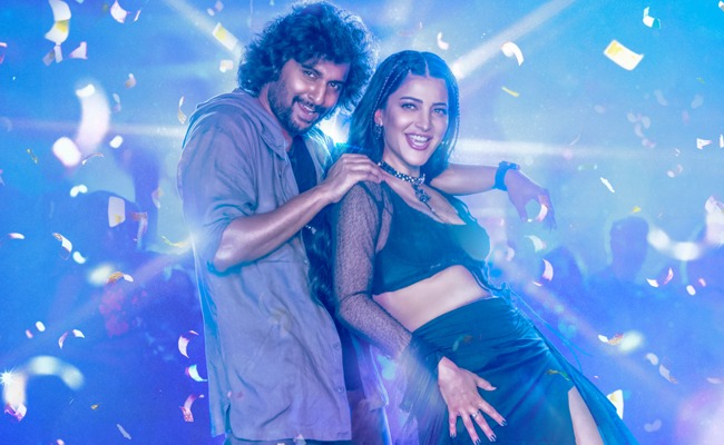 This high-energy anthem takes you on a thrilling journey against the scenic backdrop of the beach. The dynamic choreography by Bosco, featuring top heroine Shruti Haasan in chic black attire and Nani sporting a t-shirt paired with a grey shirt, serves up a visual feast. At the same time, their dance moves and the vibe all fell in the right place.