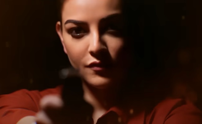 In the glimpse, Kajal is seen loading a gun and firing at a certain date on a calendar, revealing the film's release date.