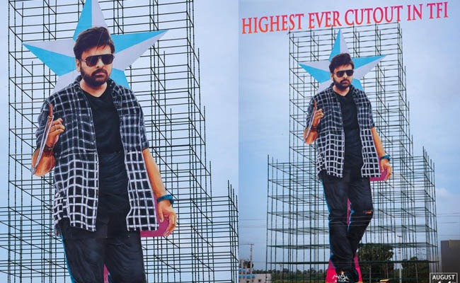 This indeed is the biggest ever cut-out (126 feet) in the Telugu film industry. Fans are elated to see such a large cut-out of their favorite star.
